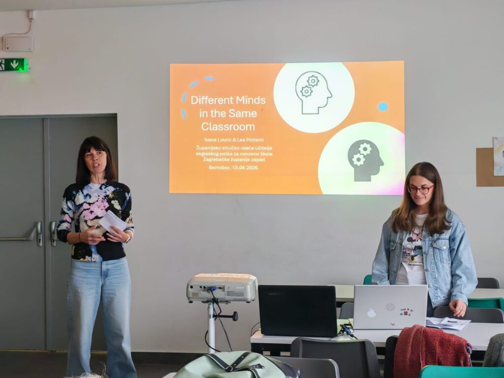 Dana 13. travnja 2026. u Samoboru, na Županijskom stručnom vijeću učitelja engleskog jezika za osnovne škole Zagrebačke županije – zapad, učiteljice Ivana Lovrić i Lea Pintarić predstavile su Erasmus+ projekt Osnovne škole Pavao Belas pod nazivom „Jednaki u različitosti“.