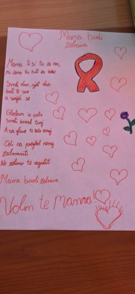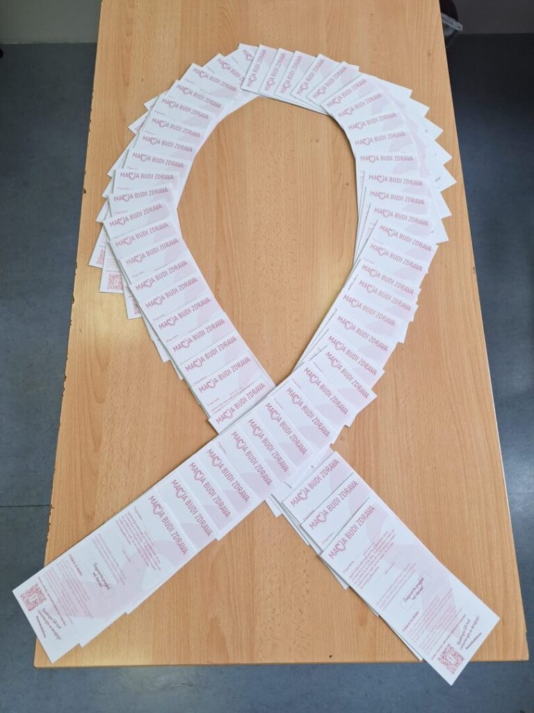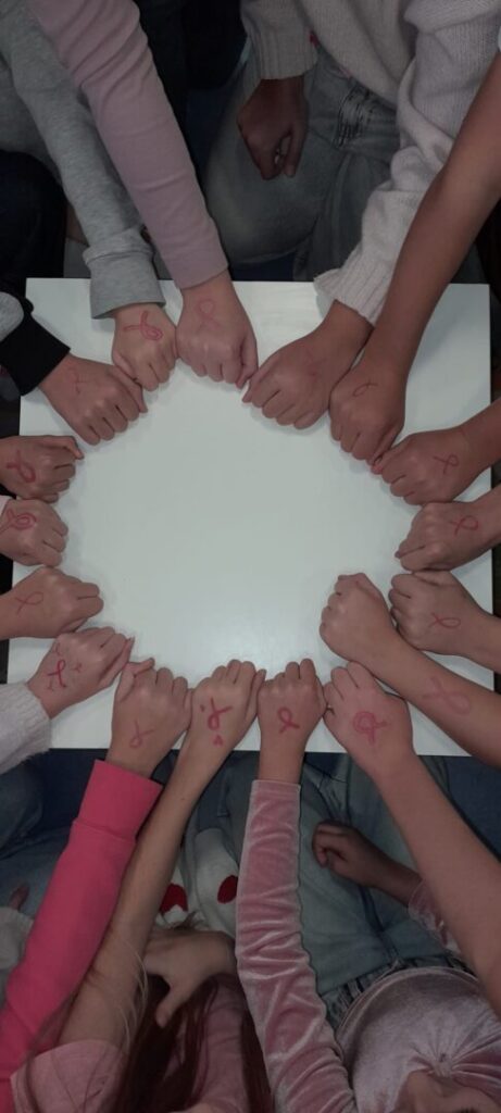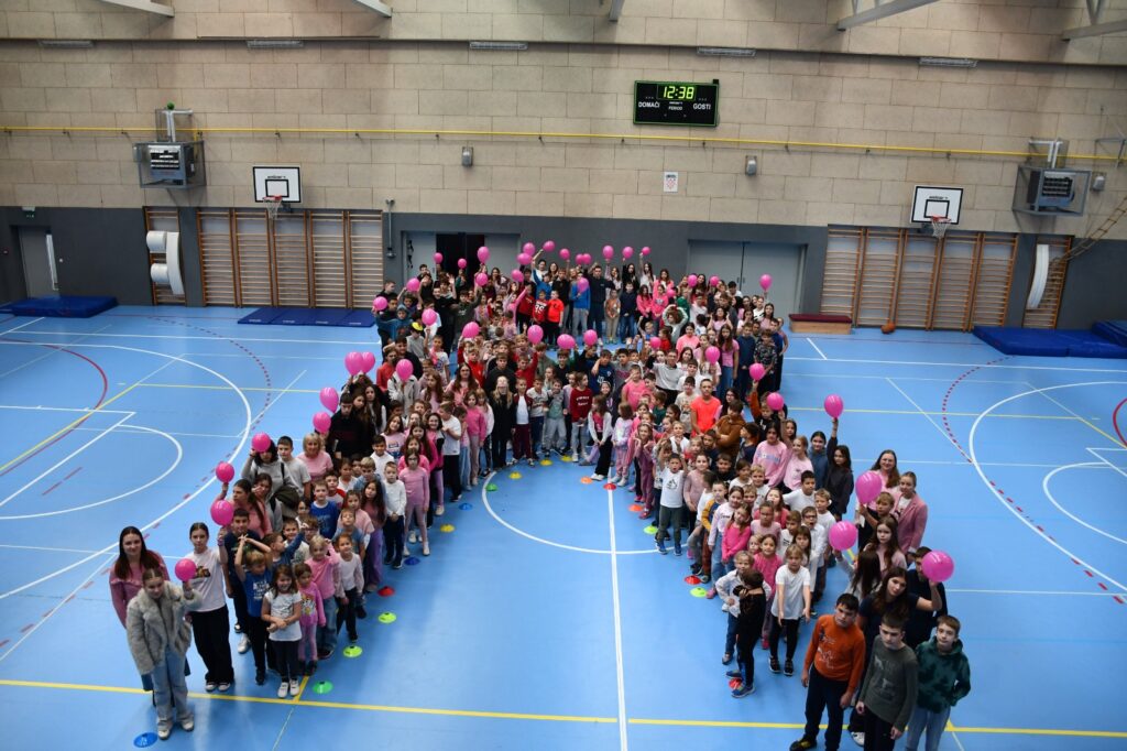 Ove školske godine naša se škola uključila u devetu godinu projekta „Mama, budi zdrava – Ružičasti listopad“ Udruge SVE za NJU. Listopad je mjesec posvećen podizanju svijesti o raku dojke, a naši su učitelji i razrednici kroz razgovore i kreativne radionice proveli projekt u svojim razredima. Učitelji i stručna suradnica psihologinja učenicima su podijelili letke namijenjene njihovim majkama u kojima ih se poziva na brigu o zdravlju i preventivne preglede. U utorak 21. 10., učenici i djelatnici škole okupili su se u školskoj dvorani gdje su formirali simboličnu ružičastu vrpcu kao poruku podrške svim ženama.