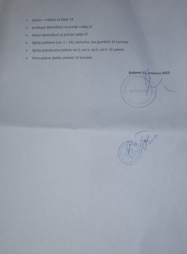 Učenici i djelatnici naše škole prikupljaju pomoć za bolnicu u Bistri prema popisu s njihove stranice.
